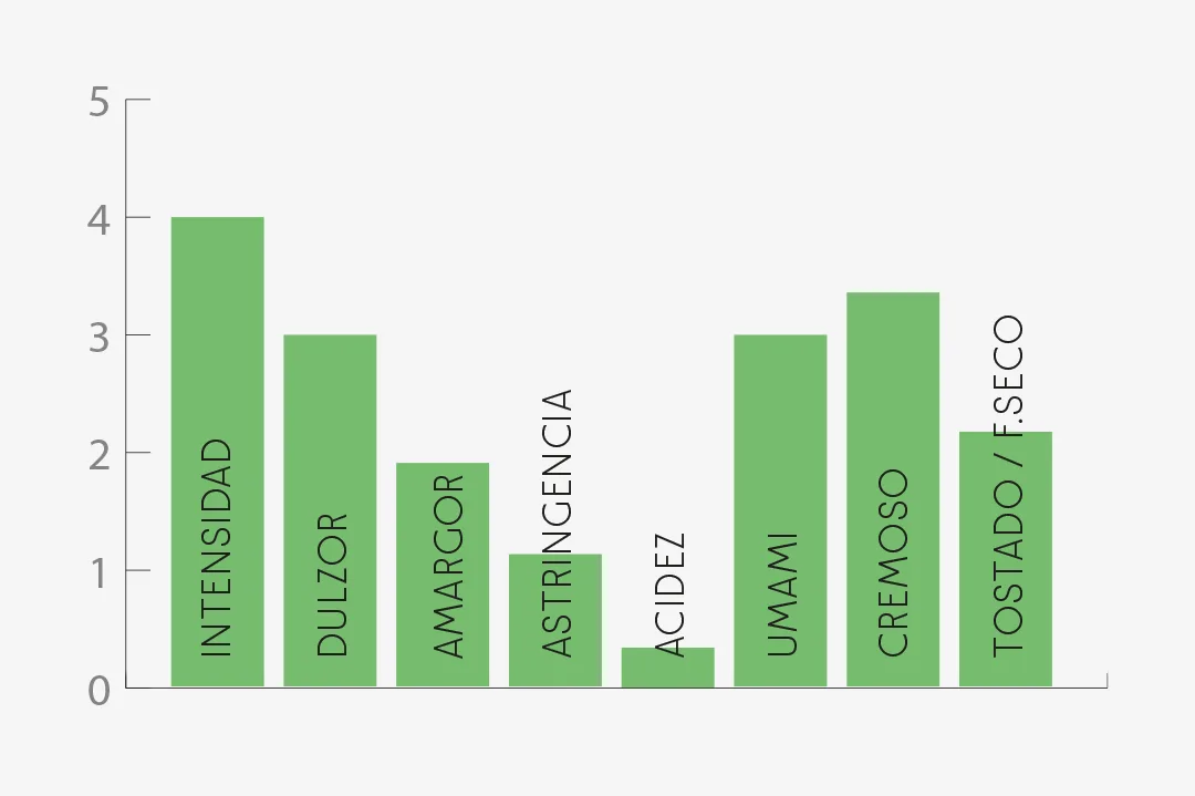 Gusto: Muy cremoso con un delicioso amargor, fresco y con una ligerisima pungencia.