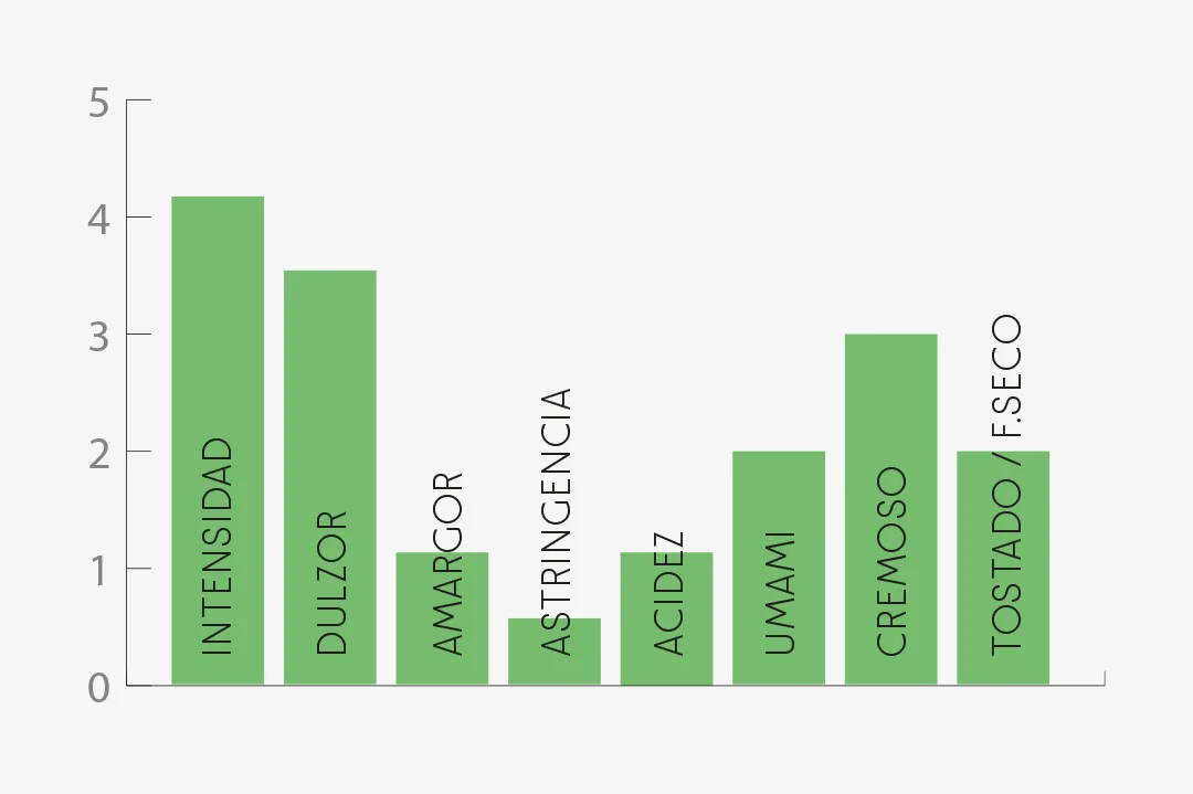 Gusto: Intensidad alta, con cuerpo medio y licor translúcido. Ataque dulce, con ligero amargor y una acidez limpia procedente de ácidos orgánicos. Sensación bucal de buena calidad, con salivación marcada y astringencia muy leve. Retrogusto largo, claramente frutal.